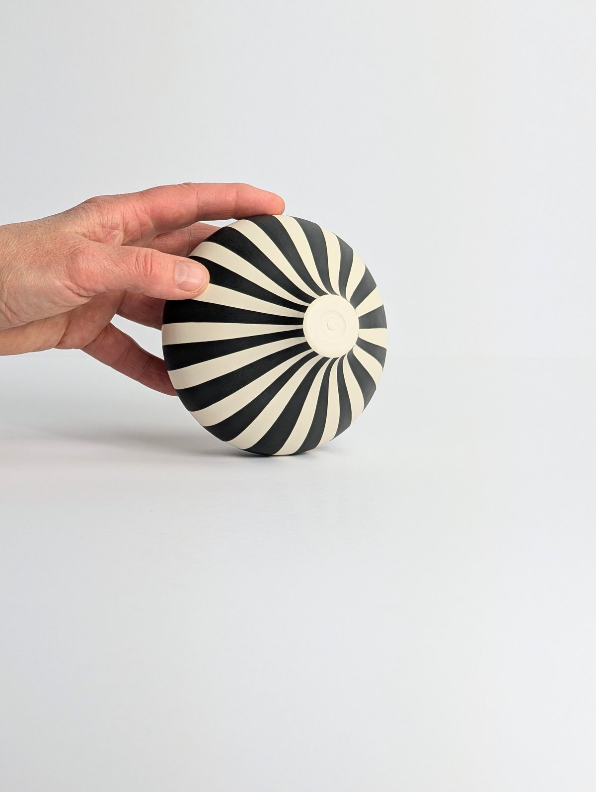 Thrown and decorated by hand. Height 9cms, Width 10.5cms. For shipping costs outside of the UK, please message me.